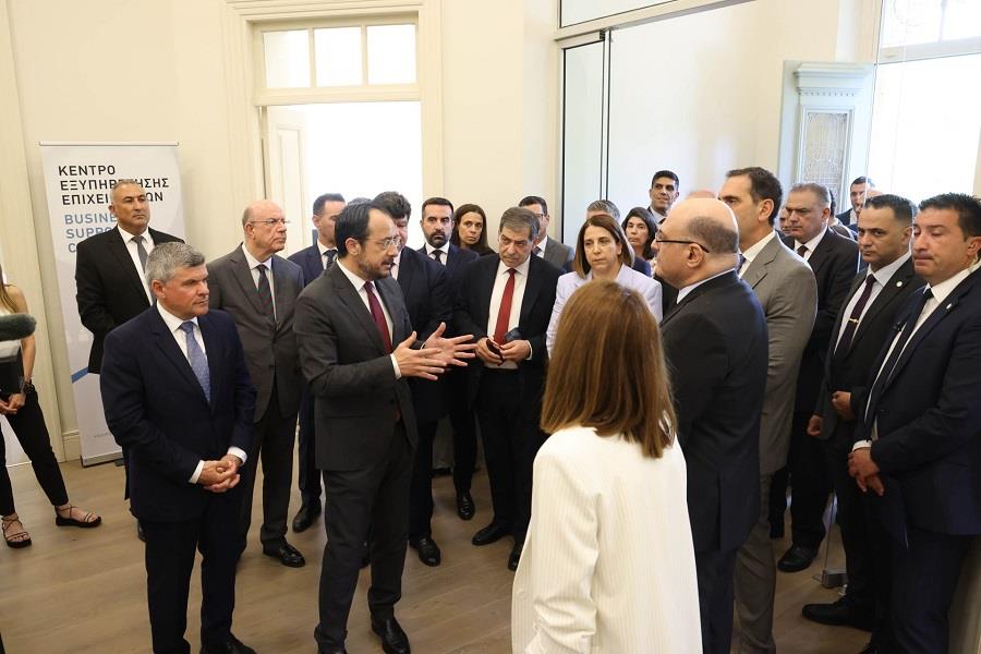 Η λειτουργία του Κέντρου Εξυπηρέτησης Επιχειρήσεων είναι «ένα σημαντικό βήμα» στη μεγάλη προσπάθεια που καταβάλλουμε για μια Κύπρο με λιγότερη γραφειοκρατία, με ψηφιοποιημένες διαδικασίες, ταχύτερη και καλύτερη εξυπηρέτηση, με επίκεντρο τις ανάγκες των επιχειρήσεων, δήλωσε ο Πρόεδρος Χριστοδουλίδης τη Δευτέρα στον χαιρετισμό του στα εγκαίνια του Κέντρου, τα οποία τέλεσε ο ίδιος.