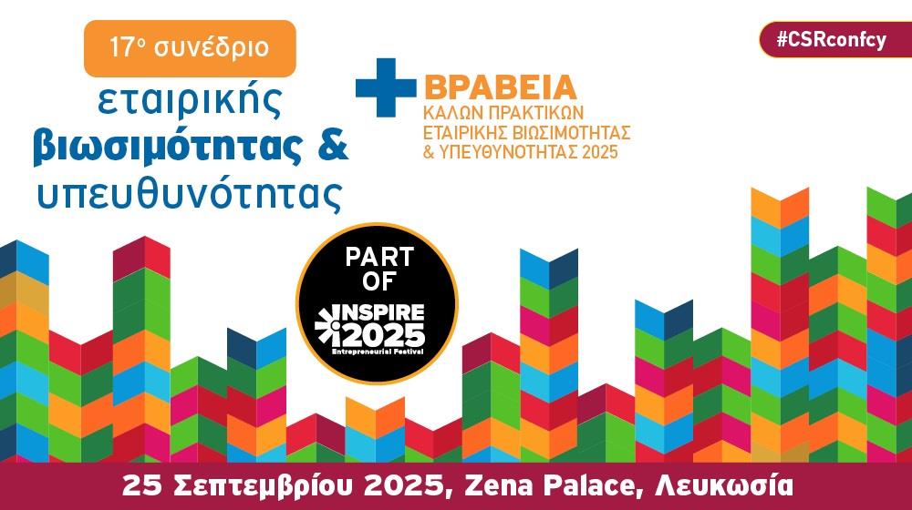 Το 17ο Συνέδριο Εταιρικής Βιωσιμότητας & Υπευθυνότητας επιστρέφει δυναμικά το 2025, ενταγμένο στο πλαίσιο του INSPIRE 2025, ως το κορυφαίο σημείο συνάντησης στελεχών και οργανισμών που δεσμεύονται να διαμορφώσουν ένα βιώσιμο και υπεύθυνο επιχειρηματικό μέλλον.