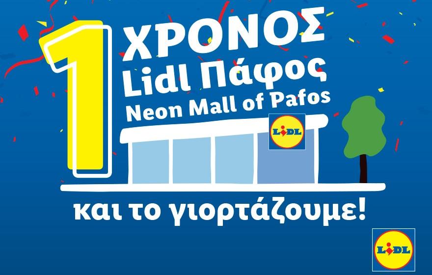 Η Lidl Κύπρου γιορτάζει την πρώτη επέτειο λειτουργίας του καταστήματός της στο εμπορικό κέντρο Neon Mall of Pafos, προσκαλώντας τους καταναλωτές σε μια ξεχωριστή γιορτινή εμπειρία γεμάτη εκπλήξεις, δώρα και διαγωνισμούς.