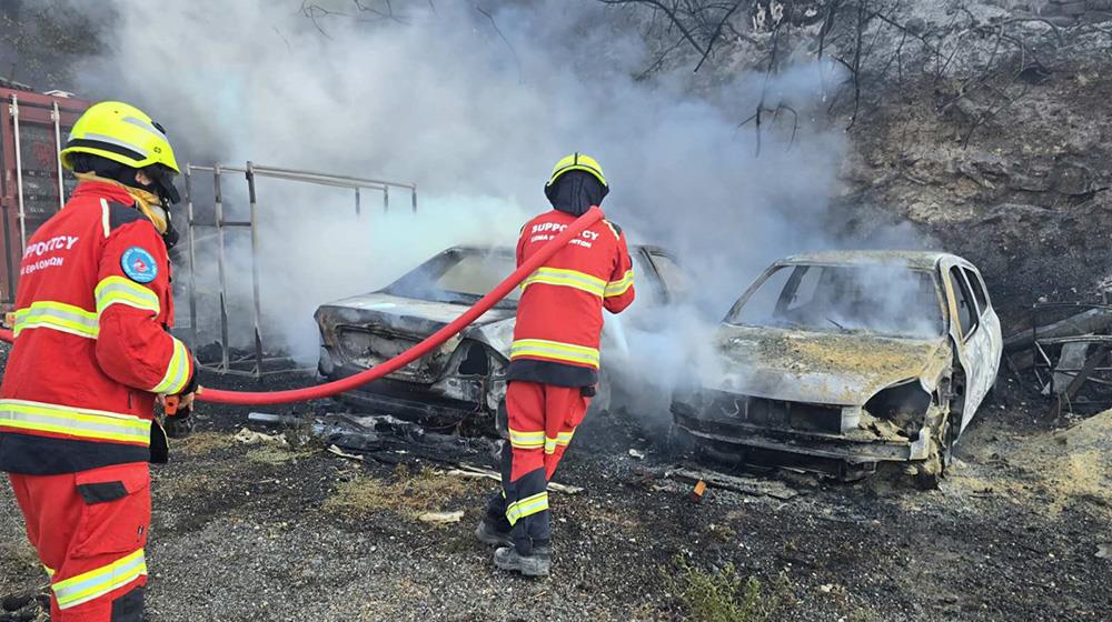 Τρία οχήματα, εξοπλισμός πυρόσβεσης και συντονισμός επιχειρήσεων