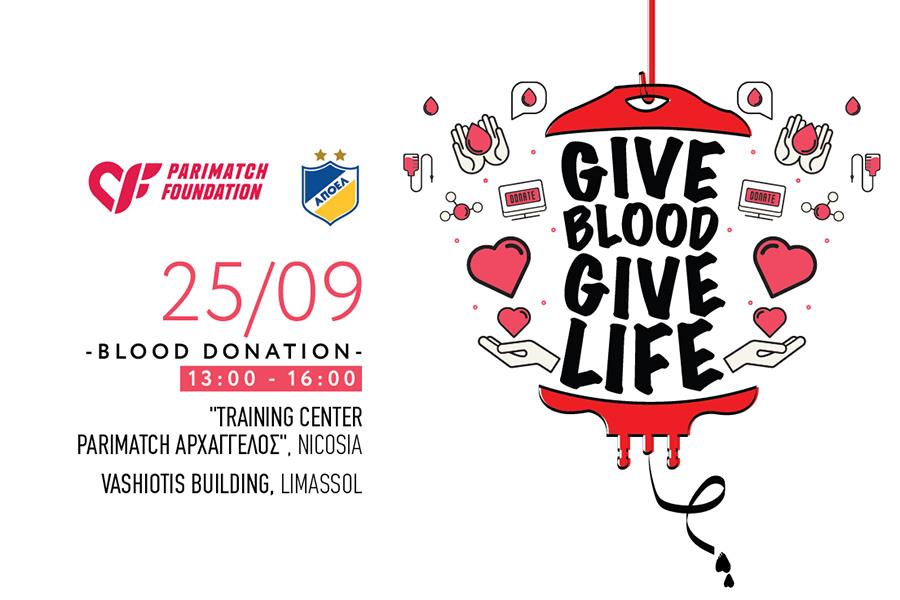 Ανοιχτή ημέρα αιμοδοσίας για το κοινό και το προσωπικό οργανώνει η Parimatch και το Parimatch Foundation σε συνεργασία με τον ΑΠΟΕΛ την ερχόμενη Τετάρτη 25/09/2019, 13:00-16:00.