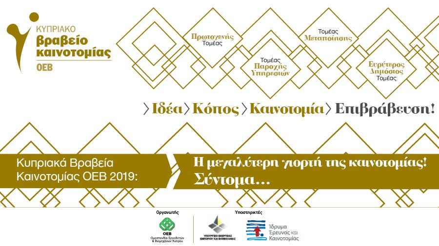 Τα «Κυπριακά Βραβεία Καινοτομίας ΟΕΒ» τιμούν για 13 συνεχόμενα χρόνια επιχειρήσεις, οργανισμούς κι υπηρεσίες του ιδιωτικού και του ευρύτερου δημόσιου τομέα που, χάρη στις εφαρμοσμένες καινοτόμες ιδέες τους, ξεχώρισαν. Τα βραβεία χωρίζονται σε 4 κατηγορίες, καλύπτοντας τους εξής τομείς: Πρωτογενής, Μεταποιητικός, Υπηρεσίες και Ευρύτερος Δημόσιος Τομέας.