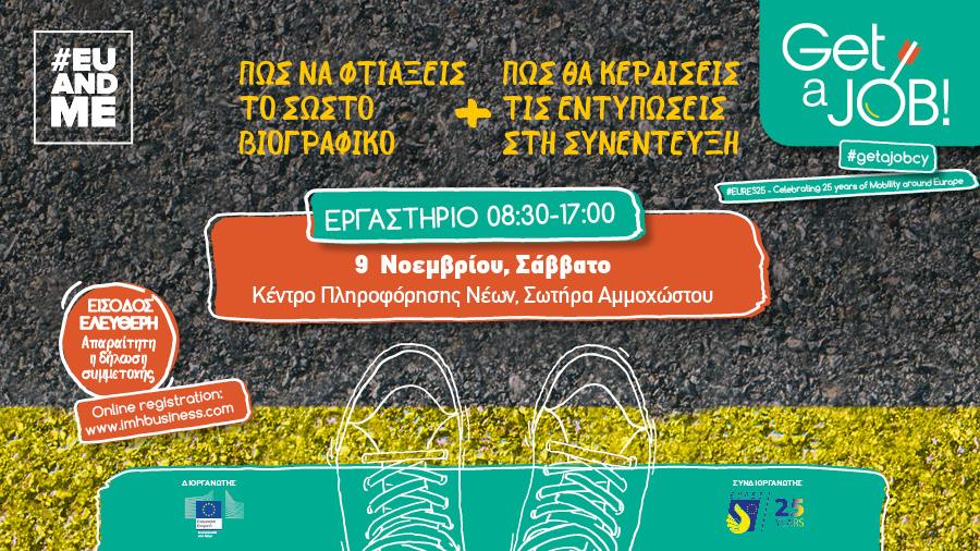 Εάν σε ενδιαφέρει να λάβεις χρήσιμες συμβουλές για τη συγγραφή του ιδανικού Βιογραφικού που θα σου ανοίξει πόρτες, όπως και να ακούσεις συμβουλές για μια πετυχημένη Συνέντευξη, δήλωσε τώρα συμμετοχή στα Εργαστήρια που διοργανώνει η Αντιπροσωπεία της Ευρωπαϊκής Επιτροπής στην Κύπρο σε συνεργασία με το δίκτυο EURES και τη Δημόσια Υπηρεσία Απασχόλησης, στο πλαίσιο της Εκστρατείας Ενημέρωσης για την καταπολέμηση της ανεργίας. Η καμπάνια θα κορυφωθεί με την Έκθεση “Get a Job” στις 28 Νοεμβρίου, στον Χαρουπόμυλο Λανίτη της Λεμεσού, όπου θα συμμετάσχουν εταιρείες από διάφορους κλάδους που έχουν ανοικτές θέσεις εργασίας.