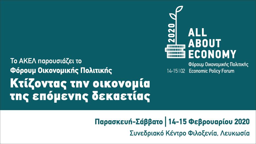Το ΑΚΕΛ διοργανώνει το Φόρουμ Οικονομικής Πολιτικής με τίτλο «Κτίζοντας την οικονομία της επόμενης δεκαετίας», στις 14-15 Φεβρουαρίου 2020, στο Συνεδριακό Κέντρο Φιλοξενία στη Λευκωσία.