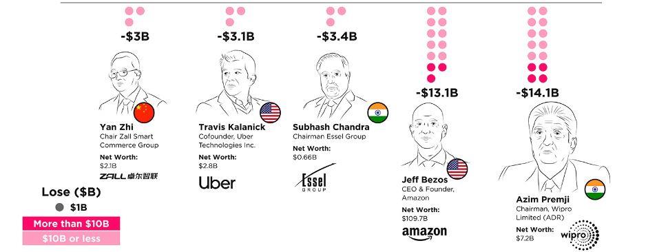 Από την άλλη πλευρά, ο Azim Premji έχασε 14 δισεκατομμύρια δολάρια μεταφέροντας μεγάλα ποσά στο φιλανθρωπικό του ίδρυμα.