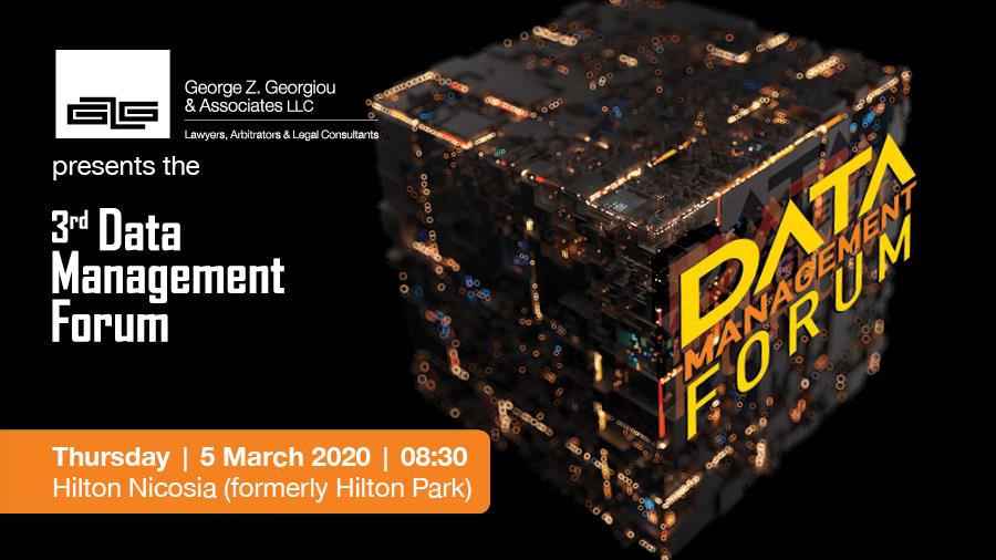 Το δικηγορικό γραφείο George Z. Georgiou & Associates LLC παρουσιάζει το «3rd Data Management Forum», την Πέμπτη 5 Μαρτίου 2020, στο ξενοδοχείο Hilton Nicosia στη Λευκωσία.