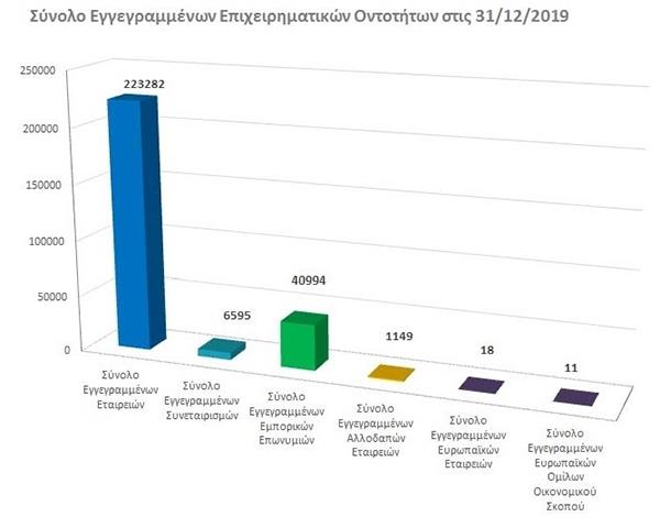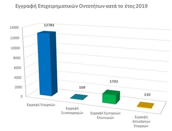 Αξίζει να σημειωθεί πως το 2019 έγινε εγγραφή 109 συνεταιρισμών, εγγραφή 1.793 εμπορικών επωνυμιών και εγγραφή 110 αλλοδαπών εταιρειών.