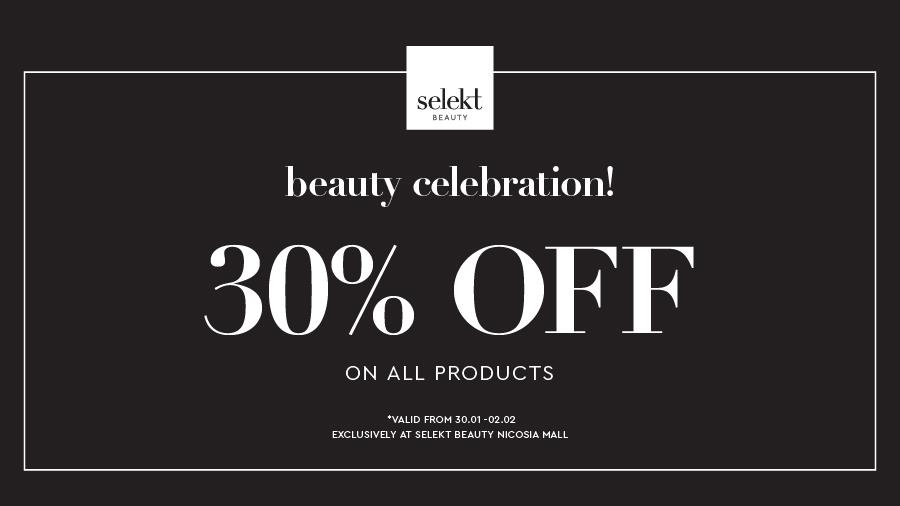 Σας περιμένουμε λοιπόν, στο νέο Selekt Beauty στο Nicosia Mall, για να ανακαλύψουμε μαζί τις πιο trendy μάρκες σε προϊόντα περιποίησης προσώπου και σώματος, μακιγιάζ και αρώματα, με έκπτωση 30% σε όλα μέχρι την Κυριακή 2 Φεβρουαρίου.