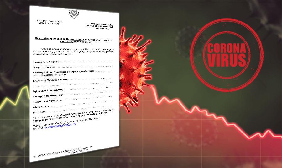 Τυποποιημένο έγγραφο ετοίμασε η Κυπριακή Δημοκρατία σε όσους επιθυμούν να υποβάλουν αίτηση για έκδοση πιστοποιητικού απουσίας από την εργασία για λόγους Δημοσίας Υγείας.