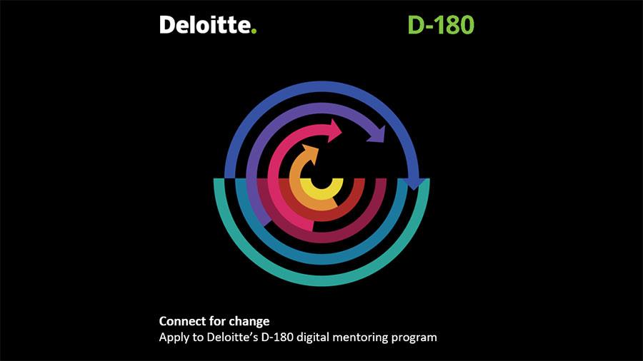 Το D-180 της Deloitte είναι πρόγραμμαψηφιακής καθοδήγησης (digital mentoring program), το οποίο αποτελεί αναπόσπαστο μέρος της αναταπόκρισής της στις ανάγκες που δημιουργούνταιως αποτέλεσμα της έξαρσης του COVID-19. Το πρόγραμμα στοχεύει σε απόφοιτους πανεπιστημίου στα πρώτα χρόνια της εργασιακής τους εμπειρίας, καθώς και σε μαθητές γυμνασίου, κολεγίου και πανεπιστημίου στην Κύπρο (οι εκπαιδευόμενοι), για την παροχή καθοδήγησηςσχετικά με εργασιακή εμπειρία από επαγγελματίες της Deloitte σε εθελοντικό επίπεδο (οι μέντορες).
