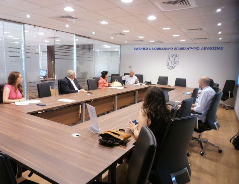 Ο Πρόεδρος τoυ Εμπορικού και Βιομηχανικού Επιμελητηρίου Λευκωσίας (ΕΒΕΛ) κ. Στέλιος Αναστασιάδης και η Πρόεδρος της Εταιρείας Τουριστικής Ανάπτυξης (ΕΤΑΠ) Λευκωσίας κ. Έλενα Τάνου πραγματοποίησαν συνάντηση στις 29 Μαΐου 2020 με εκπροσώπους της κοινοπραξίας λεωφορείων Λευκωσίας.