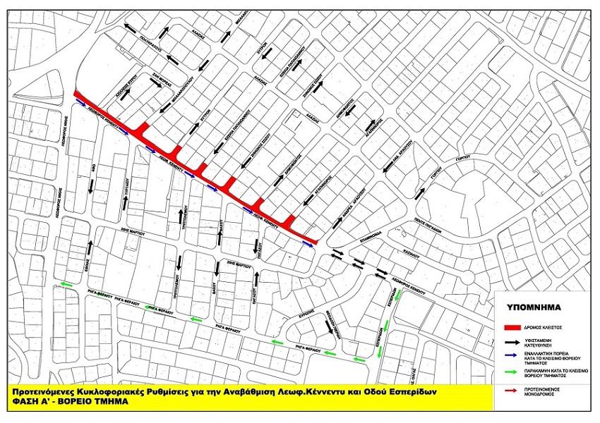 Η τροχαία κυκλοφορία θα επιτρέπεται στη μία λωρίδα με κατεύθυνση προς Λεωφόρο Λεμεσού. Η κυκλοφορία προς τη Λεωφόρο Νίκης θα εκτραπεί κυρίως διαμέσου των οδών Εσπερίδων και Ρήγα Φεραίου. Η κυκλοφορία προς τις παρόδους δεν θα διαφοροποιηθεί, ενώ κατάλληλη σήμανση θα τοποθετηθεί σε όσες οδούς θα καταστούν προσωρινά αδιέξοδοι. Θα ακολουθήσουν οι εργασίες στο νότιο πεζοδρόμιο του συγκεκριμένου τμήματος, με αντίστοιχες κυκλοφοριακές ρυθμίσεις.