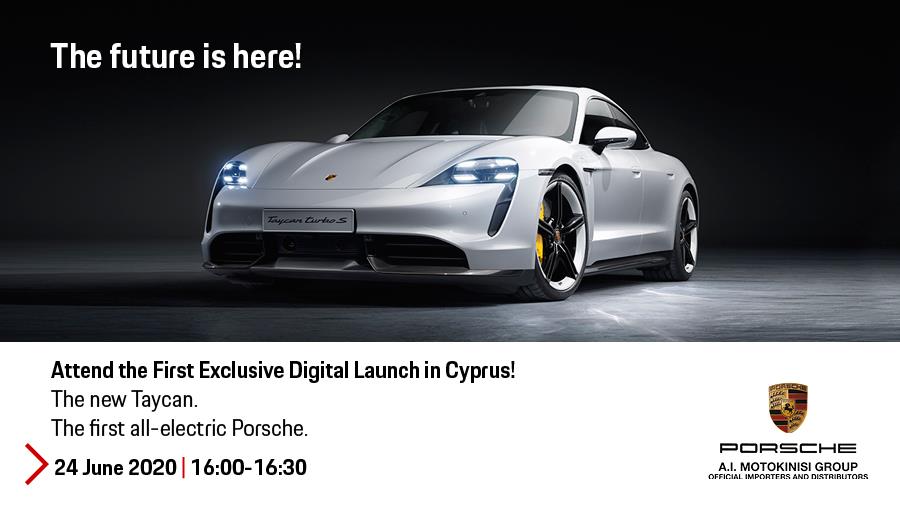 To νέo Porsche Taycan, θα παρουσιαστεί για πρώτη φορά στη κυπριακή αγορά, μέσω ενός Digital Launch, στις 24 Ιουνίου 2020, 16:00 – 16:30, που διοργανώνεται από τη Porsche Center Cyprus. Μια μοναδική ηλεκτρονική εκδήλωση, για ένα μοναδικό αυτοκίνητο. Του πρώτου ηλεκτροκίνητου Porsche.