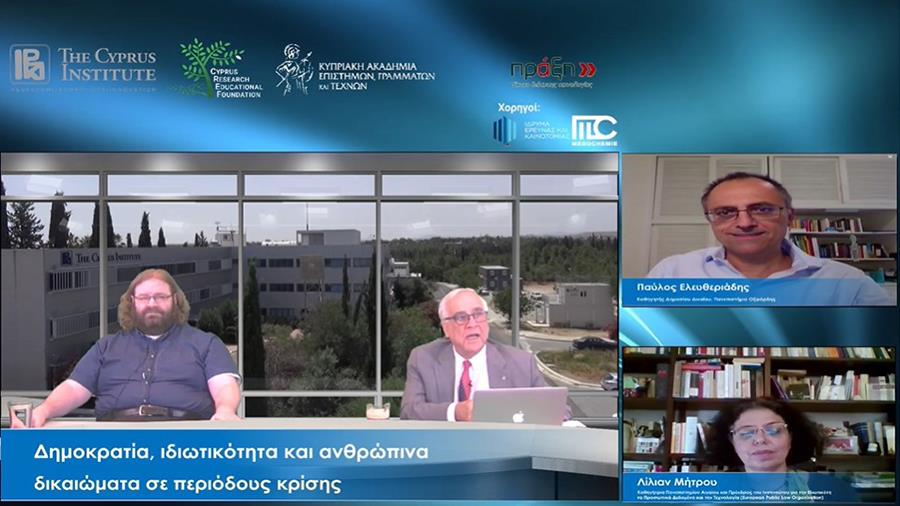 Η επιβολή περιορισμών και ελέγχων στις κινήσεις των πολιτών, καθώς και το ενδεχόμενο εντατικοποίησης τους, ως αποτέλεσμα της ανάγκης παρακολούθησης της διασυνοριακής κίνησης, συνέπεια της πανδημίας, βρέθηκαν στο επίκεντρο της τρίτης διαδικτυακής συζήτησης που διοργάνωσαν το Ερευνητικό και Εκπαιδευτικό Ίδρυμα Κύπρου (ΕΕΙΚ/CREF) και το Ινστιτούτο Κύπρου (ΙΚυ), με θέμα: «Δημοκρατία, Ιδιωτικότητα και Ανθρώπινα Δικαιώματα σε Περιόδους Κρίσης».