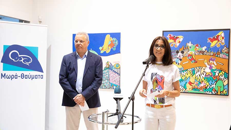 Τα εγκαίνια της φιλανθρωπικής έκθεσης υπό τον τίτλο «Ο Θανάσης Λαλάς ζωγραφίζει για τα Μωρά Θαύματα» πραγματοποιήθηκαν με μεγάλη επιτυχία την Τετάρτη 1η Ιουλίου υπό την αιγίδα του ‘Εντιμου Υπουργού Εσωτερικών κ. Νίκου Νουρή.