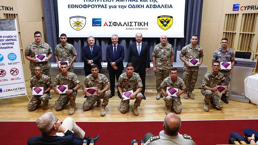 Σε εκδήλωση που πραγματοποιήθηκε στις 28 Ιουλίου 2020 στα κεντρικά γραφεία του Ομίλου CNP CYPRUS, με τη χορηγία της CNP ΑΣΦΑΛΙΣΤΙΚΗ, το ΥΠΟΥΡΓΕΙΟ ΑΜΥΝΑΣ στο πλαίσιο της «Πολιτικής Θετικών Κινήτρων», επιβράβευσε με tablets δέκα εθνοφρουρούς. Αυτοί έκαναν συστηματική χρήση του Σχεδίου Δωρεάν Διακίνησης με Λεωφορεία από και προς τις Μονάδες τους. Η σημαντική μείωση των σχετικών τροχαίων συγκρούσεων είναι η απόδειξη ότι τόσο η συγκεκριμένη δράση, όσο και όλες οι άλλες ενέργειες του ΥΠΑΜ για την επιμόρφωση των εθνοφρουρών σε θέματα οδικής ασφάλειας, είναι ιδιαίτερα επιτυχημένη.