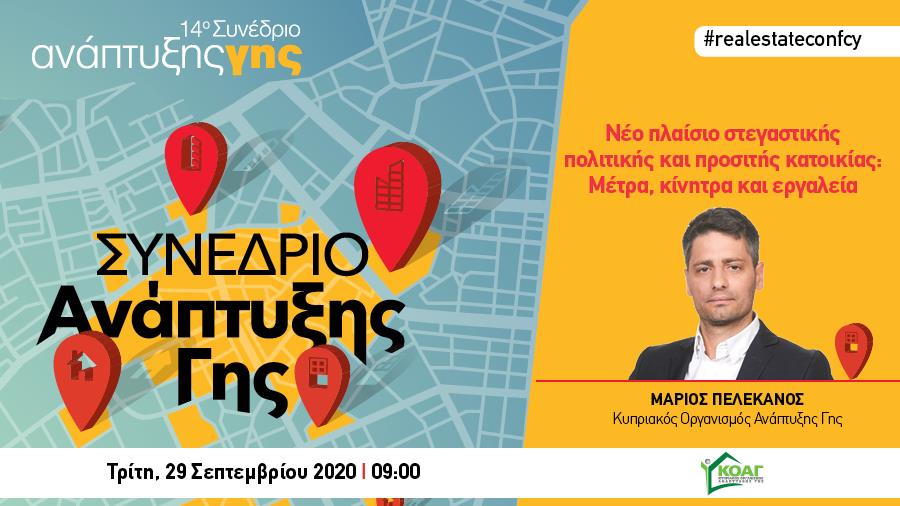 Ανάμεσα στους φετινούς ομιλητές βρίσκεται ο Πρόεδρος του Διοικητικού Συμβουλίου του Κυπριακού Οργανισμού Ανάπτυξης Γης, κ. Μάριος Πελεκάνος. Ο κ. Πελεκάνος είναι Certified Professional Manager με δεκαετή εμπειρία στα χρηματοοικονομικά και στον τομέα συμβουλευτικών υπηρεσιών.  Κατά την παρουσίασή του, ο κ. Πελεκάνος θα αναλύσει σε συντομία τα ισχύοντα σχέδια για την παραγωγή προσιτής στέγης, και στη συνέχεια θα παρουσιάσει τα μελλοντικά πλάνα της Κυβέρνησης με ιδιαίτερη έμφαση στην ποιότητα των μονάδων και στο στόχο για το άνοιγμα της αγοράς του προσιτού ενοικίου.
