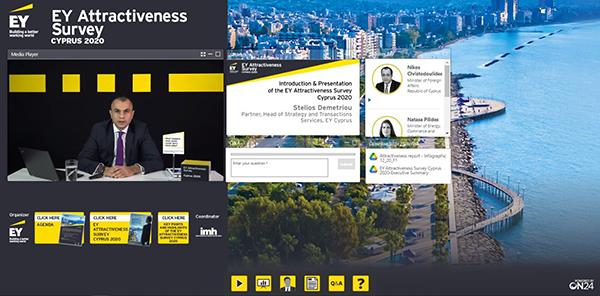 Η EY Κύπρου παρουσίασε τα ευρήματα και προτάσεις της πρώτης έρευνας Attractiveness Survey Cyprus 2020, κατά τη διάρκεια διαδικτυακής εκδήλωσης που πραγματοποιήθηκε την Τετάρτη, 16 Δεκεμβρίου. Η έρευνα, η οποία αποτελεί αναπόσπαστο μέρος του ευρύτερου προγράμματος EY Attractiveness, μίας σειράς ερευνών που διεξάγει η ΕΥ σε παγκόσμιο επίπεδο σε σχέση με ξένες επενδύσεις, αναλύει τις επιδόσεις της χώρας μας στον τομέα προσέλκυσης επενδύσεων τα τελευταία χρόνια. Καταγράφει μεταξύ άλλων τις απόψεις της διεθνούς επενδυτικής κοινότητας για τα πλεονεκτήματα και τις αδυναμίες της Κύπρου ως επενδυτικού προορισμού, όσον αφορά την εικόνα, την εμπιστοσύνη των επενδυτών και την ικανότητα της χώρας να παρέχει ανταγωνιστικά πλεονεκτήματα για τις ΑΞΕ. Η έρευνα διεξήχθη τον Ιούνιο 2020 με βάση δείγμα πέραν των 100 υπευθύνων λήψης αποφάσεων από ξένες εταιρείες, εκ των οποίων περίπου το 50% έχουν ήδη επενδυτική παρουσία στην Κύπρο.