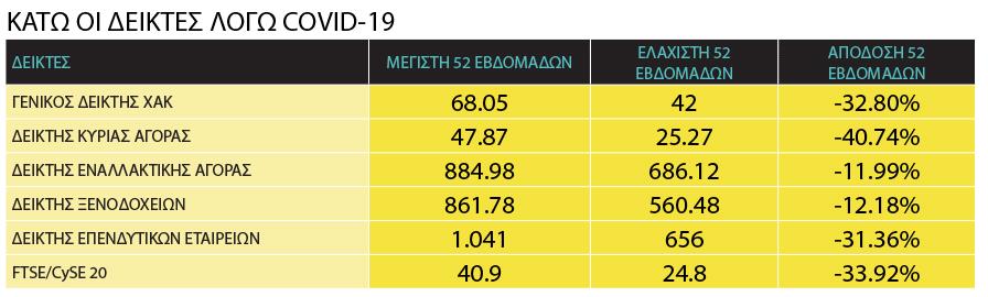 Η πανδημία του κορωνοϊού επηρέασε σε μεγάλο βαθμό τις χρηματιστηριακές αγορές παγκοσμίως, πόσο μάλλον την κυπριακή χρηματαγορά, η οποία ούτως ή άλλως μετά το 1999-2000 δεν ανέκαμψε ποτέ. Σε ετήσια βάση, μέχρι τα μέσα Νοεμβρίου, όλοι οι δείκτες του χρηματιστηρίου παρουσίαζαν σημαντική μείωση, ενώ αντίστοιχη εικόνα παρουσίαζαν και οι αποδόσεις των πλείστων εισηγμένων εταιρειών.