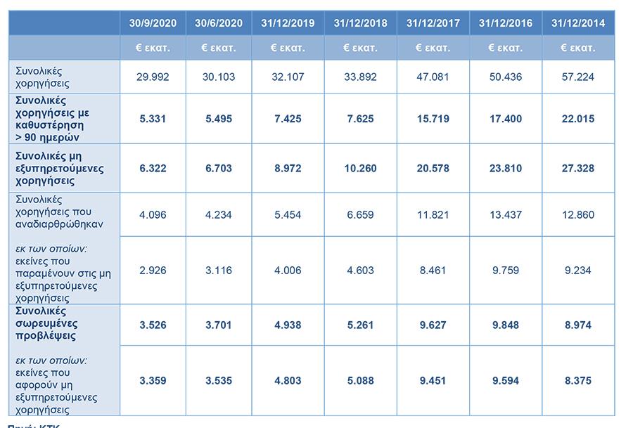 Αξίζει να σημειωθεί πως το ποσοστό των μη εξυπηρετούμενων χορηγήσεων ως προς τις συνολικές χορηγήσεις μειώθηκε στο 21,1% τον Σεπτέμβριο του 2020 σε σχέση με 47,8% που ήταν τον Δεκέμβριου του 2014.