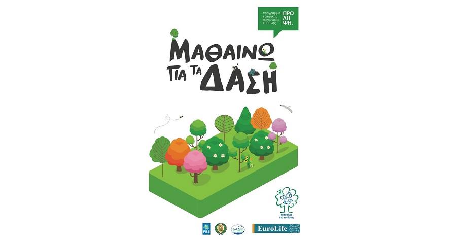 Το Πρόγραμμα "Μαθαίνω για τα Δάση" αποτελεί έναν ιδιαίτερα σημαντικό πυλώνα δράσης του Προγράμματος Εταιρικής Κοινωνικής Ευθύνης «Πρόληψη» της EuroLife, που φροντίζει μέσα από ανάλογες χορηγίες να προσφέρει στους συνανθρώπους μας τα εφόδια και τα μέσα για μια καλύτερη ποιότητα ζωής σε όλα τα επίπεδα που αφορούν στην υγιεινή διατροφή, την άσκηση, την ορθή χρήση του ποδηλάτου και την αγάπη για τη φύση και το περιβάλλον.