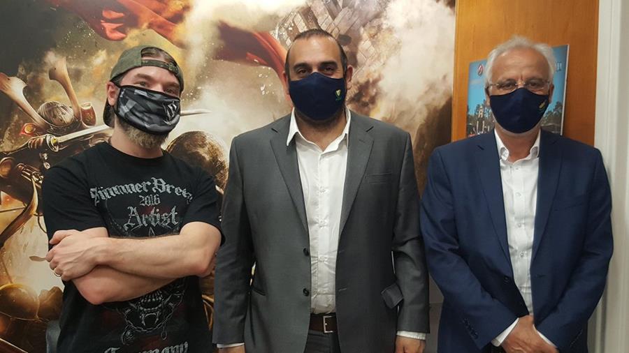 Τις αποθηκευτικές εγκαταστάσεις του σουηδικού ροκ συγκροτήματος Sabaton στη Λεμεσό, επισκέφθηκαν ο Υπουργός Μεταφορών, Επικοινωνιών και Έργων, Γιάννης Καρούσος και ο Αναπληρωτής Διευθυντής των Ταχυδρομικών Υπηρεσιών, Παύλος Παυλίδης, όπου συναντήθηκαν με τον διευθυντή, ιδρυτικό μέλος, στιχουργό και μπασίστα της μπάντας Pär Sundström.