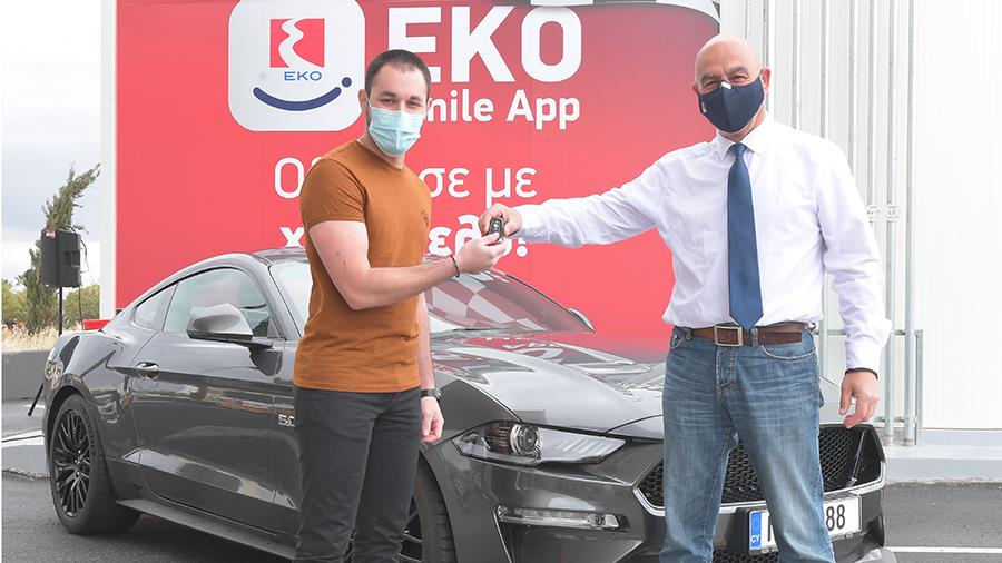 Η ΕΚΟ συνεχίζει να μοιράζει χαμόγελα μέσα από το ΕΚΟ Smile. Αυτή τη φορά παρέδωσε σε έναν ακόμη υπερτυχερό του μεγάλου διαγωνισμού EKO Smile App, ένα αυτοκίνητο – όνειρο για κάθε οδηγό. Ο μεγάλος νικητής Γιώργος Εφραίμη απέκτησε ένα ολοκαίνουργιο επιβατικό όχημα Ford Mustang Fastback 5.0V GT A/T, αξίας €56.300, το οποίο παρέλαβε κατά τη διάρκεια εκδήλωσης που πραγματοποιήθηκε το Σάββατο 10 Απριλίου. Η εκδήλωση έλαβε χώρα στο νέο υπερσύγχρονο πρατήριο ΕΚΟ στη Λακατάμεια, στην οδό Μελίνας Μερκούρη 22, τηρώντας όλα τα απαραίτητα μέτρα για τη διασφάλιση της υγείας των παρευρισκομένων.