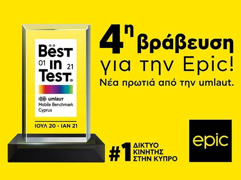 Ήδη η Epic βραβεύτηκε και από την Ookla δύο συνεχόμενες φορές ως το «Γρηγορότερο Δίκτυο Κινητής στην Κύπρο». Οι συνεχείς βραβεύσεις της Epic από τους ανεξάρτητους διεθνείς οργανισμούς μετρήσεων umlaut και Οokla, καθιέρωσαν την Epic ως το Νο1 δίκτυο κινητής στην Κύπρο ενώ απέδειξαν στην πράξη ότι η εταιρεία παραμένει πιστή στην δέσμευση της να παρέχει ένα υπερσύγχρονο δίκτυο, σε συνδυασμό με πραγματική οικονομία.