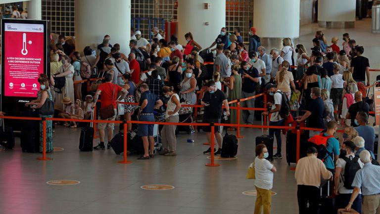 Το πρωί καταγράφηκαν εικόνες συνωστισμού στο αεροδρόμιο του Φάρο με ουρές απεγνωσμένων και οργισμένων Βρετανών που αποφάσισαν να θέσουν πρόωρο τέλος στις διακοπές τους για να γλιτώσουν την καραντίνα.