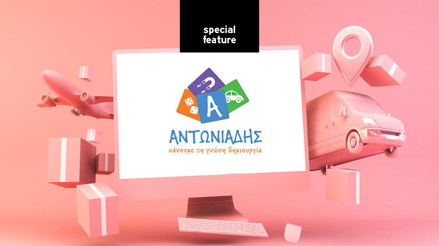 Το 2012 δημιουργήθηκε η πρώτη ιστοσελίδα της εταιρείας www.antoniadis.com.cy, η οποία αποτελούσε τη μετάβαση από τους έντυπους καταλόγους σε online παρουσία. Παράλληλα έγινε ανασχεδιασμός του λογότυπου της εταιρείας, εμπνευσμένος από τους κύριους τομείς ενασχόλησης της, με το σλόγκαν «κάνουμε τη γνώση δημιουργία» να δηλώνει ότι η γνώση μπορεί να μεταδοθεί και μέσω της δημιουργίας. Στην πρώτη ιστοσελίδα ο χρήστης είχε τη δυνατότητα να εξερευνήσει τα προϊόντα online, με πληροφορίες, φωτογραφίες και τιμές, πριν επισκεφθεί το φυσικό κατάστημα για την αγορά.