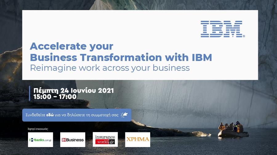 Προκειμένου να ενημερωθεί μία επιχείρηση για τις τεχνολογίες και τις συμβουλευτικές υπηρεσίες της που μπορείτε να έχετε στη διάθεσή σας ώστε να δρομολογήσετε με τον πιο αποδοτικό τρόπο τον επιχειρηματικό μετασχηματισμό της επιχείρησής σας, η ΙΒΜ διοργανώνει μία ψηφιακή εκδήλωση την