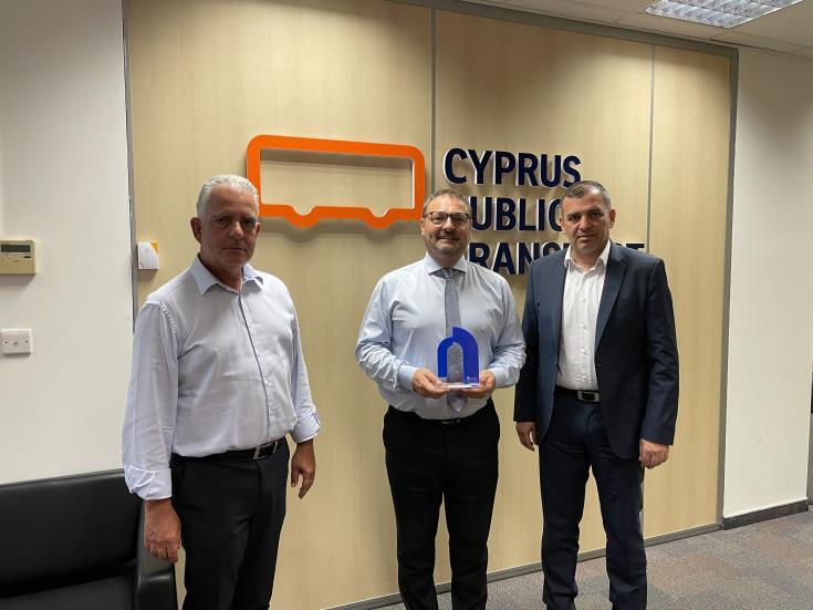 Στο πλαίσιο της συνεργασίας των δύο οργανισμών, ο πρόεδρος της ΕΤΑΠ Λευκωσίας Θεόδωρος Κρίγγου παρέδωσε τιμητική πλακέτα στον Ανώτατο Εκτελεστικό Διευθυντή της Cyprus Public Transport, Julio Tironi.