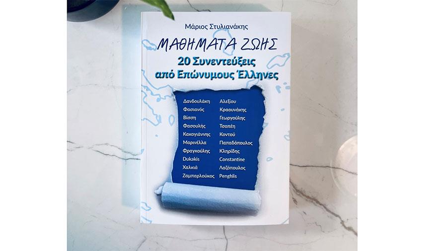 Ένα νέο βιβλίο, διαφορετικό απ’ όσα έχουμε συνηθίσει, ευαίσθητο και κυρίως διδακτικό κυκλοφορεί σε επιλεγμένα βιβλιοπωλεία της Κύπρου. Στη συλλεκτική έκδοσή του βιβλίου «Μαθήματα Ζωής: 20 Συνεντεύξεις από Επώνυμους Έλληνες», ο συγγραφέας Μάριος Στυλιανάκης αποτυπώνει μέσα από αληθινά βαθυστόχαστες συνεντεύξεις τα πιο σημαντικά μαθήματα ζωής που προέκυψαν στην πορεία και διαδρομή 20 επώνυμων Ελλήνων, από το χώρο του Πολιτισμού, του Αθλητισμού και της Πολιτικής.