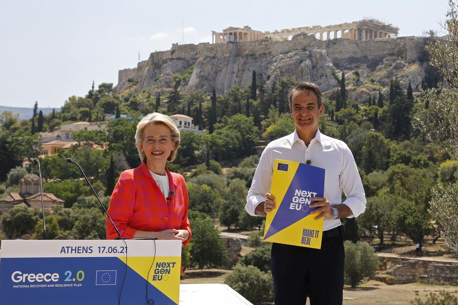 Τα βασικά σημεία των δράσεων του Εθνικού Σχεδίου Ανάκαμψης και Ανθεκτικότητας «Ελλάδα 2.0», παρουσιάστηκαν στην εκδήλωση στην Αρχαία Αγορά, παρουσία της προέδρου της Ευρωπαϊκής Επιτροπής Ούρσουλα φον ντερ Λάιεν, την οποία υποδέχθηκε, ξενάγησε και προσφώνησε ο πρωθυπουργός, Κυριάκος Μητσοτάκης. Στην αρχή της εκδήλωσης ο πρωθυπουργός και η πρόεδρος της Κομισιόν απηύθυναν σύντομο χαιρετισμό.
