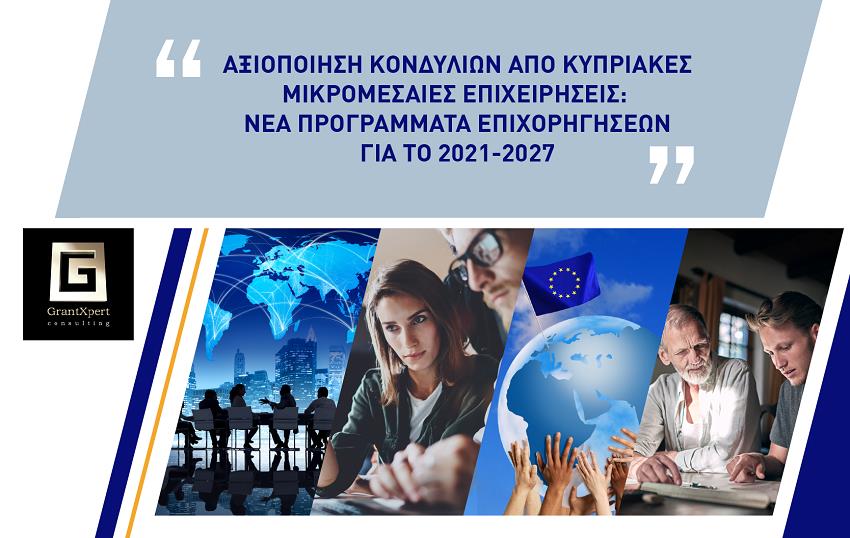 Η GrantXpert συνεχίζει τα πολύ επιτυχημένα της σεμινάρια για τα εθνικά και Ευρωπαϊκά προγράμματα επιχορηγήσεων που ενδιαφέρουν τις μικρομεσαίες επιχειρήσεις (MμΕ) της Κύπρου. To σεμινάριο προσφέρεται εδώ και 7 χρόνια και υπάρχει τεράστιο ενδιαφέρον από στελέχη ΜμΕ για συμμετοχή, με πέραν των 300 συμμετεχόντων μέχρι σήμερα. Για την τρέχουσα επταετία των επιχορηγήσεων, τη νέα προγραμματική περίοδο 2021-2027, το σεμινάριο είναι ανανεωμένο και σημαντικά αναβαθμισμένο.