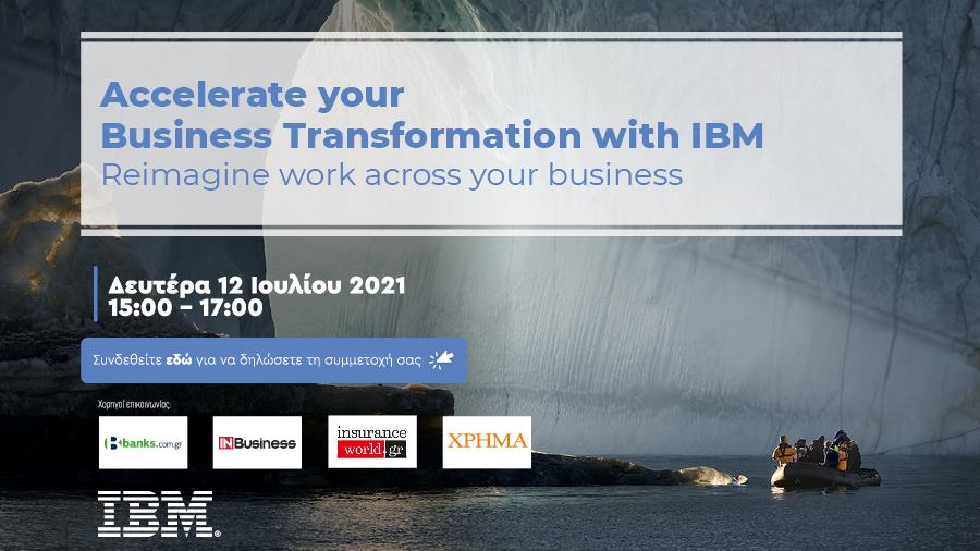 Προκειμένου να ενημερωθεί μία επιχείρηση για τις τεχνολογίες και τις συμβουλευτικές υπηρεσίες της που μπορείτε να έχετε στη διάθεσή σας ώστε να δρομολογήσετε με τον πιο αποδοτικό τρόπο τον επιχειρηματικό μετασχηματισμό της επιχείρησής σας, η ΙΒΜ διοργανώνει μία ψηφιακή εκδήλωση την
