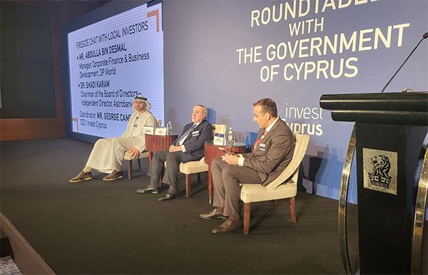 Συζήτηση διεξήχθη, επίσης, με τον Abdulla bin Desma, Manager στην DP World και με τον Dr. Shadi Karam, Πρόεδρο του Δ.Σ. της Astrobank, οι οποίοι ανέλυσαν τους λόγους γιατί επέλεξαν να επενδύσουν στην Κύπρο καθώς και τα πλεονεκτήματα που διαθέτει η χώρα μας έναντι άλλων δικαιοδοσιών. Τη συζήτηση συντόνισε ο CEO του Invest Cyprus, Γιώργος Καμπανέλλας.