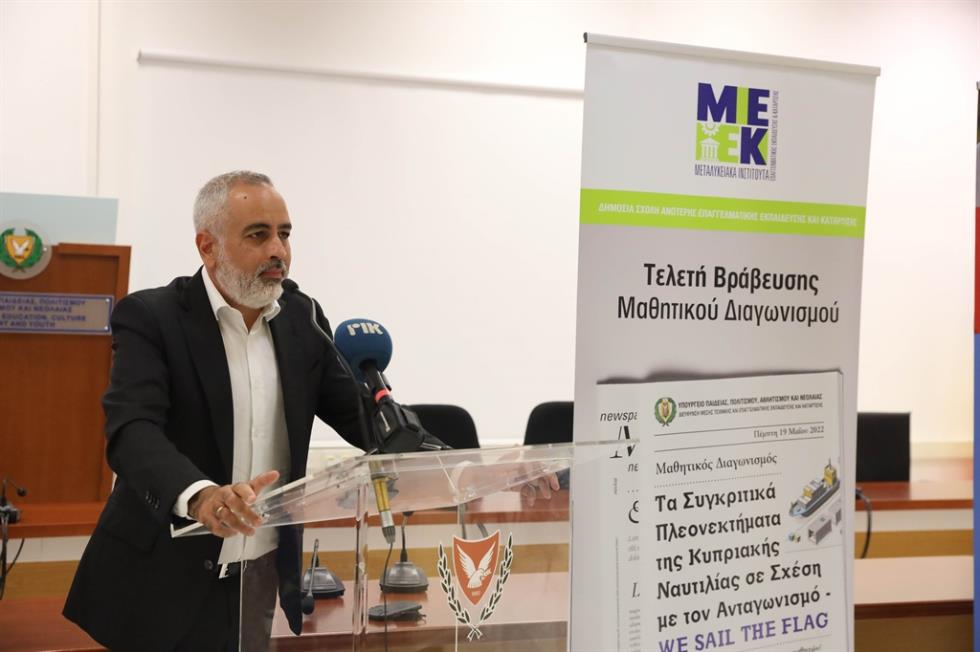 Mε μεγάλη επιτυχία στέφθηκε η Τελετή Βράβευσης του Μαθητικού Διαγωνισμού Έρευνας με θέμα: «Τα Συγκριτικά Πλεονεκτήματα της Κυπριακής Ναυτιλίας σε Σχέση με τον Ανταγωνισμό-WE SAIL THE FLAG», η οποία πραγματοποιήθηκε την Πέμπτη, 19 Μαΐου 2022, στην Αίθουσα Εκδηλώσεων του Υπουργείου Παιδείας, Πολιτισμού, Αθλητισμού και Νεολαίας (ΥΠΠΑΝ).