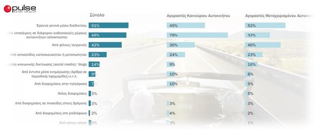 Το διαδίκτυο αποτελεί πηγή πληροφόρησης για την πλειοψηφία των αγοραστών μεταχειρισμένων αυτοκινήτων. Η πληροφόρηση λαμβάνεται μέσω πλοήγησης, ιστοσελίδων εταιρειών αλλά και μέσω κοινωνικής δικτύωσης (social media/ blogs). Ακολουθούν οι συστάσεις (συμβουλές/πληροφορίες) φίλων/συγγενών.