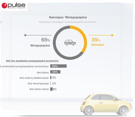 Σύμφωνα με την έρευνα, το 65% των ιδιόκτητων επιβατικών αυτοκινήτων στην Κύπρο, αφορούν σε μεταχειρισμένα αυτοκίνητα, με το 54% να αγοράζουν από μεταπωλητές και το 34% από ιδιώτες. Το 4% έχουν αγοράσει από πλατφόρμες ηλεκτρονικού εμπορίου, αναδεικνύοντας την τάση για online αγορές που άρχισε να πρωτοεμφανίζεται και στην κυπριακή αγορά. Το ποσοστό αυτό αναμένεται να πολλαπλασιαστεί μελλοντικά, λαμβάνοντας υπόψη και την παγκόσμια τάση που παρατηρείται.