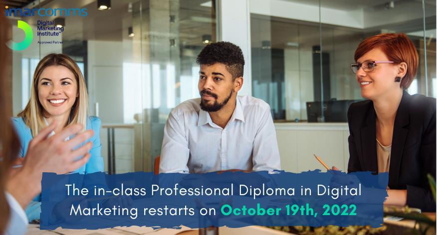 Η ImarComms, διεθνής συνεργάτης του Digital Marketing Institute, είναι στην ευχάριστη θέση να ανακοινώσει ότι το In-Class Professional Diploma in Digital Marketing ξεκινά την Τετάρτη, 19 Οκτωβρίου 2022 η ώρα 18:00 στις σύγχρονες εγκαταστάσεις του Πανεπιστημίου Κύπρου.
