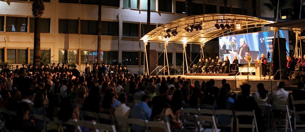 Απευθυνόμενος στους απόφοιτους ο Αντιπρύτανης Έρευνας και Εξωτερικών Υποθέσεων του Ευρωπαϊκού Πανεπιστημίου Κύπρου, Καθηγητής Μάριος Βρυωνίδης ανέφερε: «Αυτή η τελετή αποφοίτησης είναι ξεχωριστή για όλους στο Ευρωπαϊκό Πανεπιστήμιο Κύπρου για δύο πολύ σημαντικούς λόγους: Πρώτον, πραγματοποιείται στην πανεπιστημιούπολη μας με τη φυσική παρουσία του προσωπικού, των φοιτητών, των οικογενειών και των φίλων τους μετά από τρία πολύ δύσκολα χρόνια.