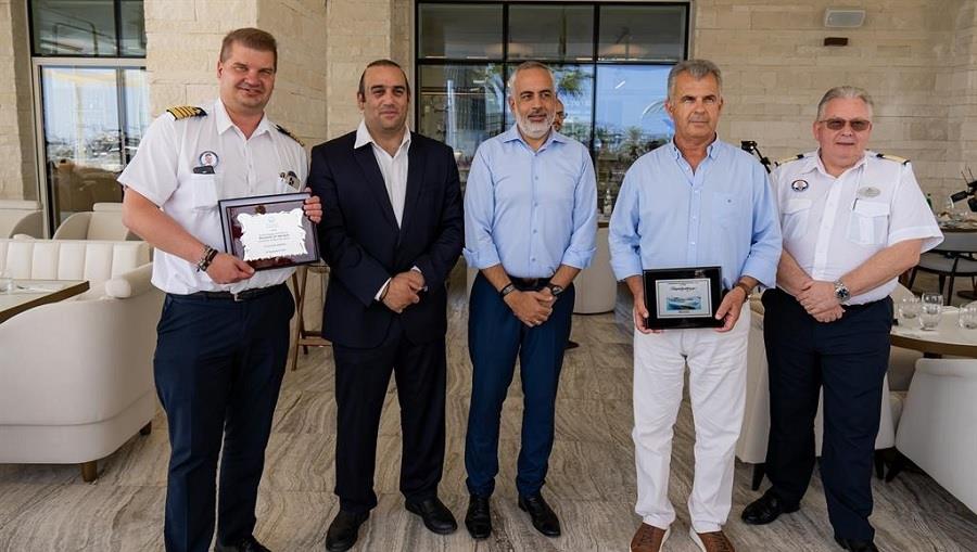 Αναμνηστικά δώρα δόθηκαν επίσης στον καπετάνιο από τον Δήμο Αγίας Νάπας.
