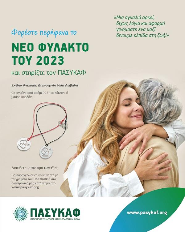 Ένα όμορφο δώρο για αυτούς που αγαπάτε. Με μια μικρή εισφορά των €15, στηρίζετε τις Υπηρεσίες και τα Προγράμματα του ΠΑΣΥΚΑΦ, που προσφέρονται παγκύπρια, δωρεάν στα άτομα με εμπειρία καρκίνου και στις οικογένειες τους.