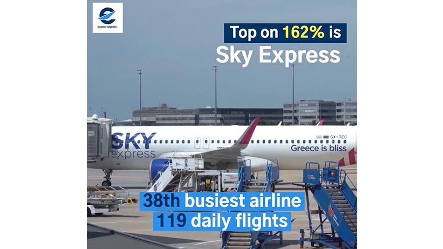 Ως η ευρωπαϊκή εταιρεία με τη μεγαλύτερη αύξηση σε επίπεδο πτητικού έργου για το 2022 αναδεικνύεται η SKY express σύμφωνα με τα στοιχεία του Eurocontrol.