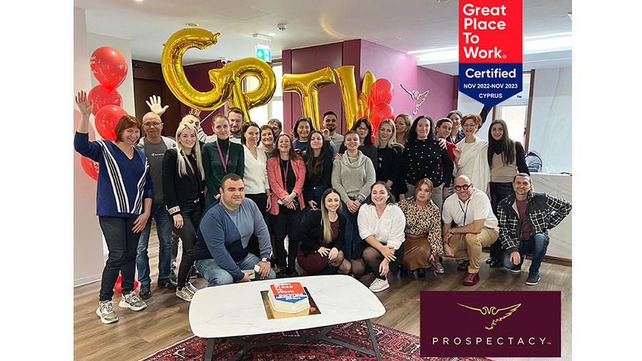 Ο τομέας υπηρεσιών συνεχίζει να ‘’επεκτείνει’’ την παρουσία του στην κοινότητα του Great Place to Work®. Η Prospectacy, ολοκλήρωσε με επιτυχία τη διαδικασία αξιολόγησης ως Great Place to Work®, με τα αποτελέσματα της έρευνας προσωπικού Trust Index© να επιβεβαιώνουν το ψηλό επίπεδο της εργασιακής κουλτούρας της εταιρείας.