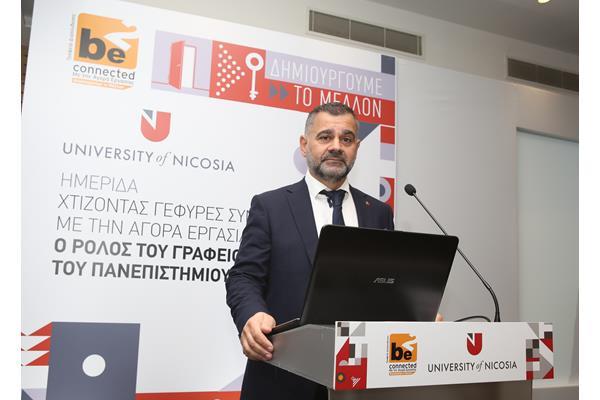 Η Ημερίδα με τίτλο: “Χτίζοντας Γέφυρες Συνεργασίας με την Αγορά Εργασίας” πραγματοποιήθηκε από το Γραφείο Διασύνδεσης του Πανεπιστημίου Λευκωσίας. Η εκδήλωση έγινε στο πλαίσιο δράσεων του Έργου «Γραφεία Διασύνδεσης Πανεπιστημίων με την αγορά εργασίας» και οι συμμετέχοντες ενημερώθηκαν για τις δραστηριότητες και το έργο που έχει επιτελεστεί μέχρι σήμερα από το Γραφείο Διασύνδεσης. Η Ημερίδα επέτρεψε τη διεύρυνση του δικτύου συνεργασιών με τον επιχειρηματικό κόσμο, αναδεικνύοντας τις προκλήσεις και ευκαιρίες που προκύπτουν μέσα από την εδραίωση του θεσμού των τοποθετήσεων.