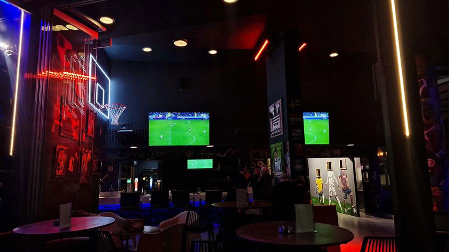 Καθίστε αναπαυτικά στους άνετους καναπέδες, χαλαρώστε και απολαύστε κάθε στιγμή στις τεράστιες οθόνες, με τους φίλους και την οικογένεια. Αφήστε για λίγο τις σκοτούρες της καθημερινότητας και μπείτε σε ένα χώρο που δημιουργήθηκε για να μοιραστεί με όλους τις αληθινές αξίες του αθλητισμού. Ο υγιής ανταγωνισμός και το πάθος για τη νίκη είναι μέρος του παιχνιδιού, όπως και η δυνατότητα να έχεις μπροστά σου μία μεγάλη γκάμα από μπύρες και απολαυστικά σνακ, ακόμα και shisha.