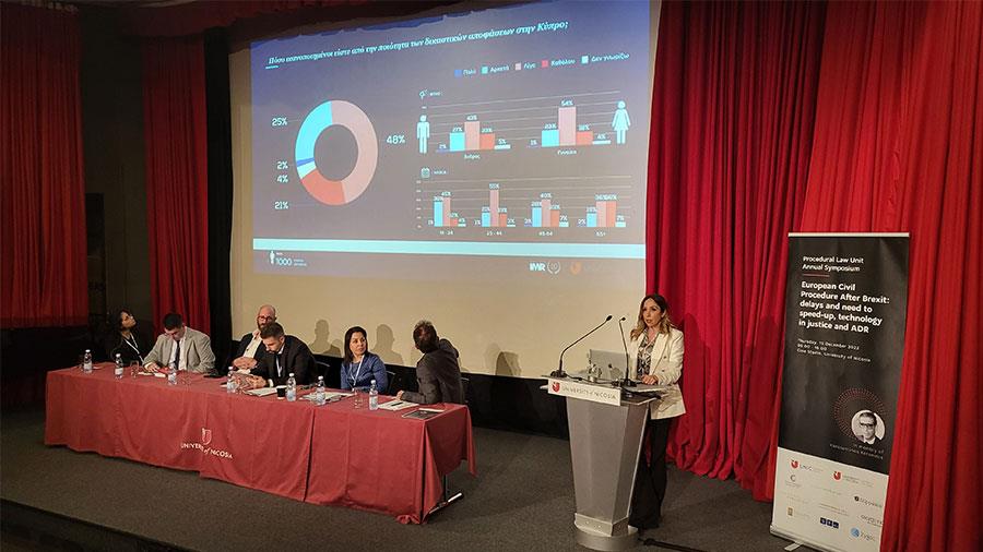 Σημαντικά ευρήματα καταγράφονται στην ποσοτική Έρευνα με θέμα «Το σύστημα Πολιτικής Δικαιοσύνης στην Κύπρο», την οποία διενήργησε η ΙΜR/Πανεπιστήμιο Λευκωσίας και παρουσιάστηκε στο πλαίσιο του 2ου Συμποσίου της Μονάδας Δικονομικού Δικαίου της Νομικής Σχολής του Πανεπιστημίου.