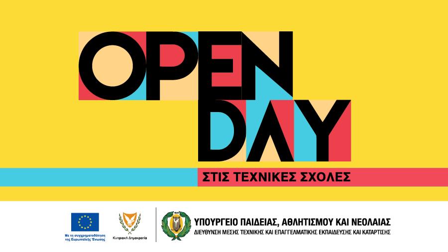 Η ενημερωτική ημερίδα «OPEN DAY» θα διεξαχθεί το Σάββατο, 4 Φεβρουαρίου 2023, ταυτόχρονα, σε πέντε τοποθεσίες. Συγκεκριμένα, τις πύλες τους θα ανοίξουν για το ευρύ κοινό η A΄ Τεχνική και Επαγγελματική Σχολή Εκπαίδευσης και Κατάρτισης Λευκωσίας, η B΄ Τεχνική και Επαγγελματική Σχολή Εκπαίδευσης και Κατάρτισης Λευκωσίας, η Τεχνική και Επαγγελματική Σχολή Εκπαίδευσης και Κατάρτισης Μακάριος Γ΄ Λευκωσίας, η Περιφερειακή Γεωργική, Τεχνική και Επαγγελματική Σχολή Εκπαίδευσης και Κατάρτισης Αυγόρου/Αμμοχώστου και η Τεχνική και Επαγγελματική Σχολή Εκπαίδευσης και Κατάρτισης Πάφου.